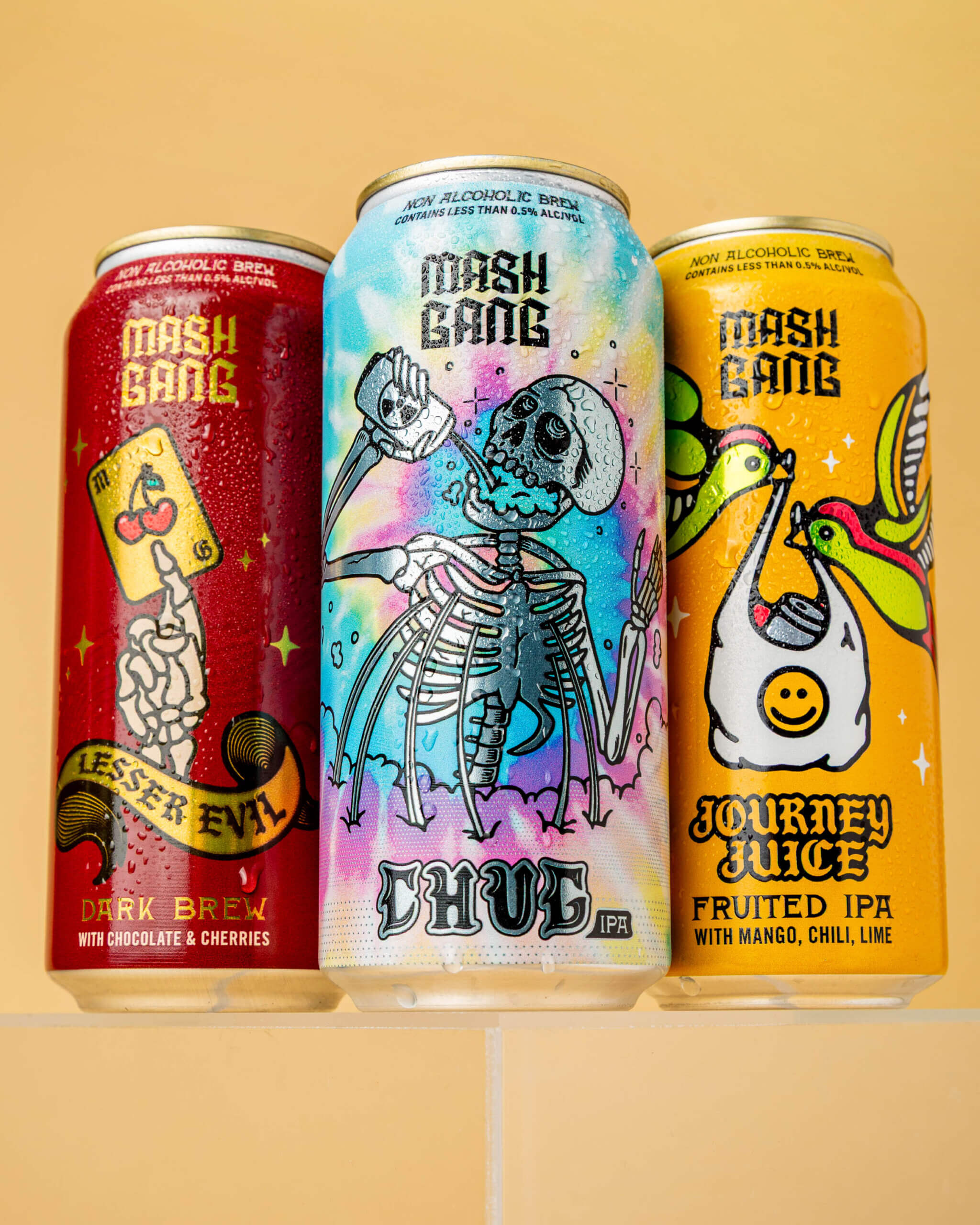 Mash Gang is a UK no and low-alc brand that’s experienced an explosion of growth in a very short time. As they began to enter the US market, we refreshed their core packaging and helped expand the brand beyond their cans.